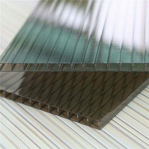 – ورق‌های پلی کربنات چندجداره با ضخامت متغیر (4 الی 16 میلی‌متر) که دارای کانال‌های هوا برای ایجاد اثر عایق‌بندی حرارتی هستند.